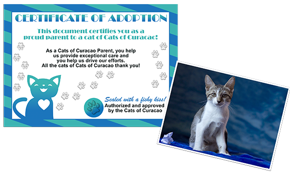 As soon as your adoption has been confirmed by Cats of Curacao, you will receive: